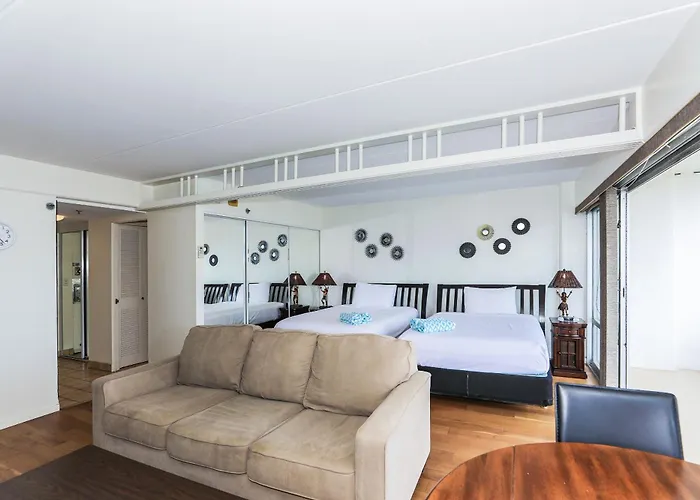 Nestled in the heart of Waikiki, known as the birthplace of modern surfing, Ilikai Tower 1113 Apartment offers an idyllic retreat for those seeking sun, surf, and sophistication. Just 1.5 km from the pristine Magic Island Lagoon Beach, this welcoming apartment serves as a perfect base for exploring the vibrant beach life while being only 700 meters from the Hawaii Convention Center, making it an ideal choice for both leisure and business travelers. For those arriving by air, the nearest airport is conveniently located just 14 km from the apartment, ensuring a hassle-free start to your Hawaiian adventure. Additionally, with easy access to public transport and major roadways, exploring the beautiful island of Oahu is simple and accommodating.